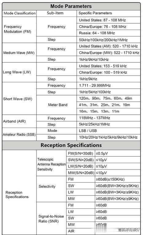 音频树立包含自动增益截止阈值、增益及手动截止,均以dB为单元。第三页树立页有降噪带宽模式、阈值、平衡器类型、按键音、静噪阈值。灌音可通过快捷按键齐全。能干:我实测灌音功能偶发极度,尚不笃定是SD卡问题也曾其他故障。标配的纸质施展书澄清标注了使命模式:USB、LSB、CW、DSB、AM、SAM、NFM、WFM。调谐步进为:100Hz、500Hz、1kHz、2.5kHz、5kHz、6.2kHz、8.3kHz、9kHz、10kHz。