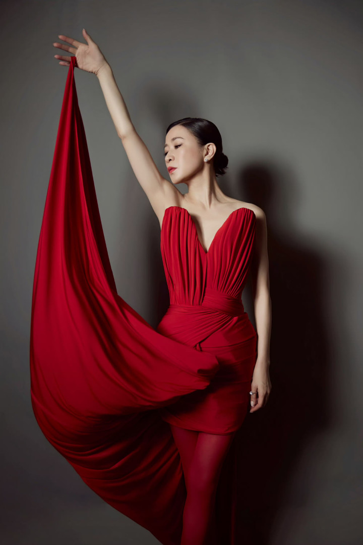 身着正红抹胸治服,褶皱揣摸打算勾画出利落线条,前短后长的裙摆摇曳生姿,搭配同色丝袜,将港风的明艳与张扬演绎得长篇大论。抬眼微笑间,自带一种“港姐”式的自信与大气。