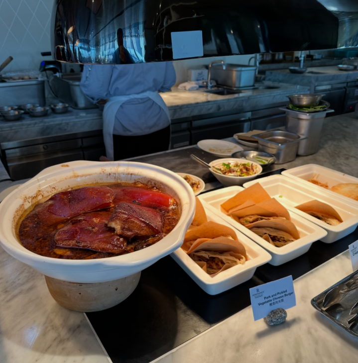 “劳动员能严慎从事地对待你,取餐区每说念菜傍边齐站着戴高帽的厨师先容菜品,连咖啡杯齐是骨瓷的,拿在手里千里甸甸的。”