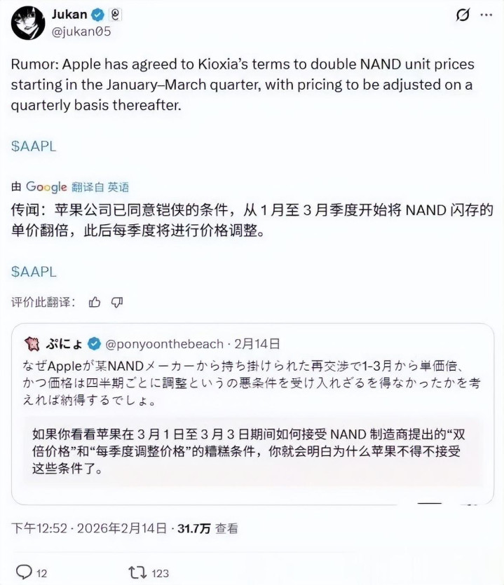 内容上,NAND闪存全面加价之后,iPhone17ProMax若干也会受到影响。