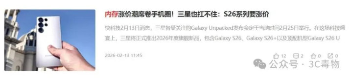 由于内存加价的影响,三星S26系列也扛不住了,简略率会加价。