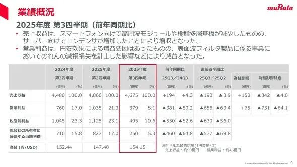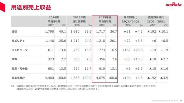 虽然面向智能手机的高频模块和树脂多层基板需求有所减少,但面向服务器的电容器需求有所增加,村田第三季度销量有所增长。