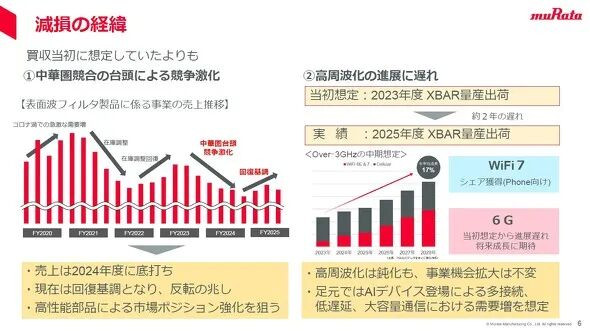 村田指出,公司在2022年3月斥资约350亿日元收购美国RF滤波器厂Resonant,此次因Resonant认列438亿日元商誉减损损失。此外,公司判断固定资产仍存在回收可能性,故未实施减值。
