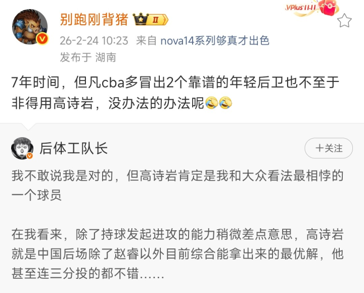 再给人人共享一下球迷的褒贬,有球迷暗示“我的不同观念是。在他的三分产量之下来谈掷中率价值不大[揣手]。数据这一年照实看着还行,关联词在我看山东比赛的经由中,他是一个基本莫得踏实得离婚段基本靠蹭分的球员。诚然了,大部分的国内后卫皆稳健我说的这个情况。”