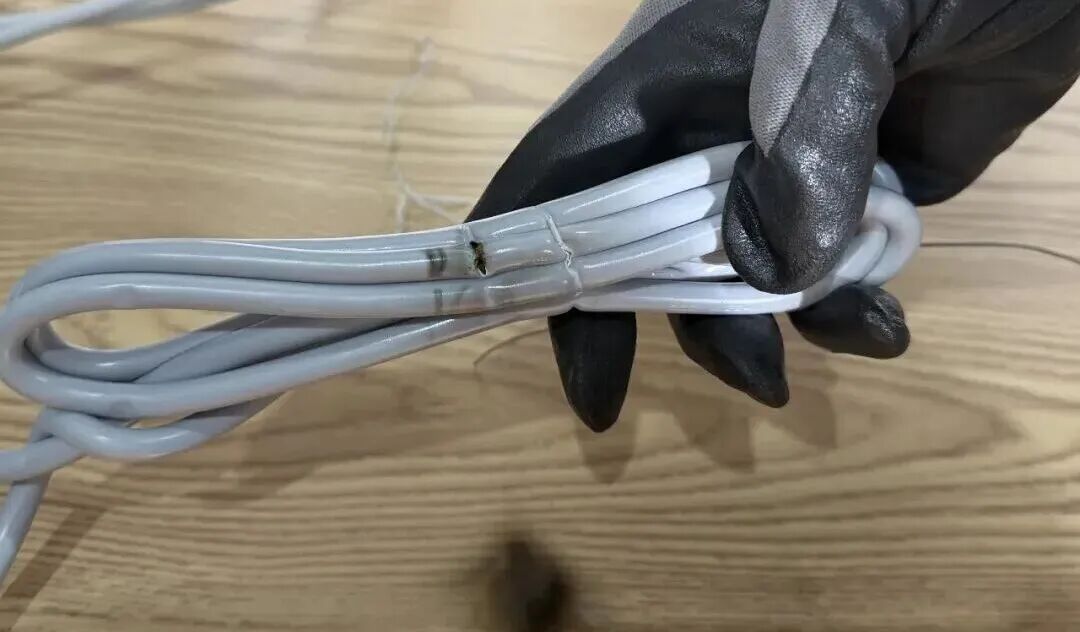 被捆扎的电线外表已烧焦