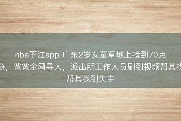 本文转自【潇湘晨报】; 近日,广东佛山,一网友发视频称,2岁女童在草地中捡到了70克价值约7万元的黄金项链,引发网友关注。 {jz:field.toptypename/} 网络截图。 1月27日,女童的父亲唐先生告诉潇湘晨报记者,1月18日他带女儿出去玩,在草地上看到女儿拿着一根链子甩,他上去一看竟然是条金链子。之后他发了一条视频寻找失主,1月25日派出所的工作人员刷到了他的视频,联系了他说失主找到了。 网络截图。 唐先生说,失主和他是一个镇子上的,曾在他店里吃过饭,那天他也......