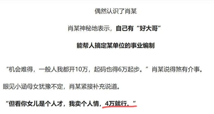 考编制的东谈主越来越多,热点岗亭几百东谈主抢一个限额,笔试口试政审秩序复杂。对求职受挫的东谈主来说,花4万径直惩办听起来能省去这些虚浮,哪怕有风险,也承诺试。