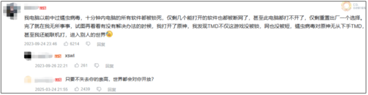 此事在帕鲁、鸣潮、燕云、无暖、异环(测试阶段)、幻塔、宝可梦朱紫(用电脑模拟器玩)、饥荒、战地6、战争雷霆、云顶之弈、欧陆风云、地狱潜兵2、CS2,还有个停运的归龙潮中……均有记载,仙之人兮列如麻。