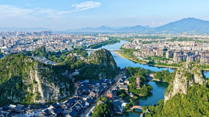 在桂林市区 咱们能见到一座座山脊 这里是我国萧疏的城中有山、山中有城的城市