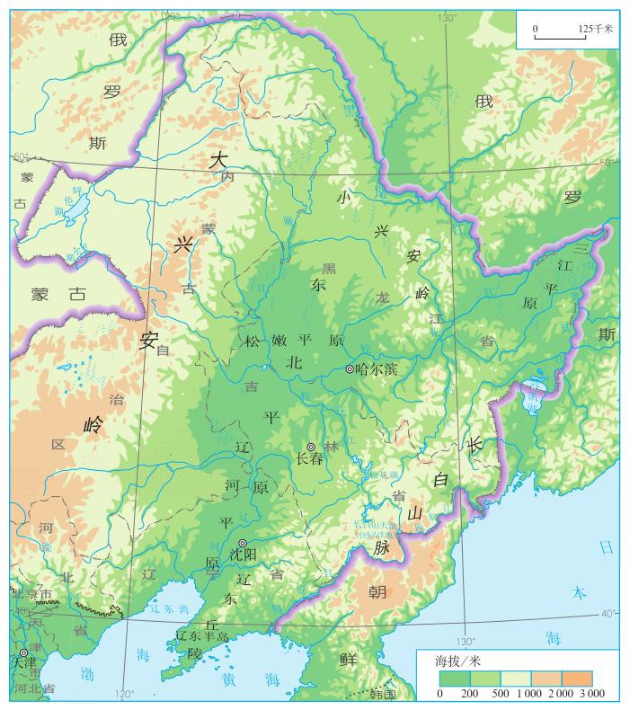 大小兴安岭渺茫如墨,松花江、嫩江如两条银练,迤逦于黑地皮上。