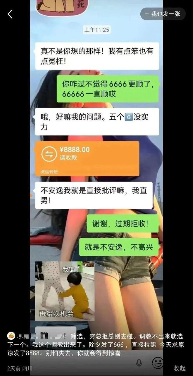 除了这件事,之前发生的相同火遍全网的两件事,第一是那句“你有莫得可乐喝”,还有5090显卡的事,践诺王人是一样。说白了即是男方缺爱缺深远,无东说念主关注俗例了,一霎女方回答了极少关怀就破防了。